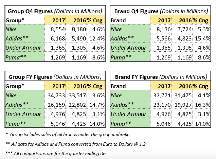 That competition is beginning to fall behind though. adidas has been recently doing incredibly well financially, its first quarter sales in 2016 are up 22%, to roughly $5.4 billion and net income up 38%.