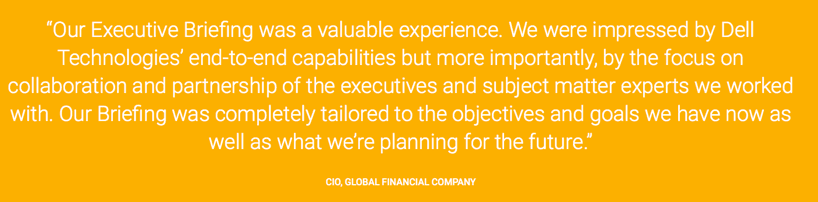 A consumer can attend a Solution Engagement to address a particular issue, or to master a certain piece of technology that can help with a need. Another consumer can attend an Executive Briefing Program, a meeting in which Dell experts gather employees from a company together, or where Dell experts go to a particular company, and help plan new ventures or growth ideas one-on-one, specifically looking at how technology works with these ideas. With both programs, Dell’s intentions are clear: they want to know every customer personally, and give them the best solution and hardware for their particular problem or business. Customers are engaged with directly, one-on-one, and with consistent communication so the customer always has an easy place to ask questions or make complaints, and also to offer praise.