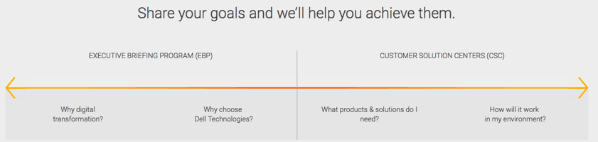 Dell EMC is incredibly invested in customer engagement, believing that “no two customer journeys are the same,” so sales are highly customized to the individual or business purchasing computer technology from them. A Dell sales representative asks for a person’s or business’s goals, and help them find the right technologies and solutions for their needs.