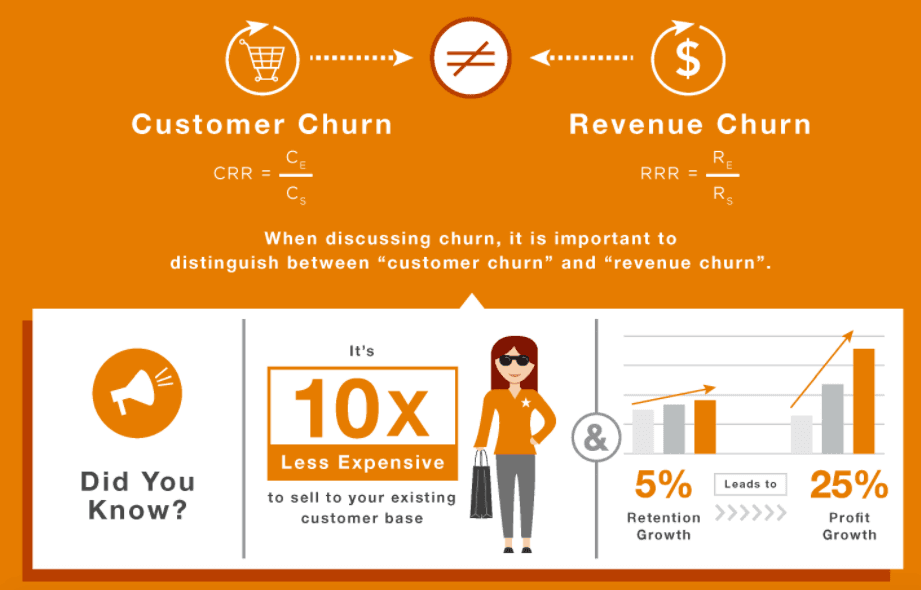 CustomerGauge's eBook on retention also uncovers less know facts about customer churn and revenue growth, as well as distinguishing between customer churn and revenue churn (See image below).