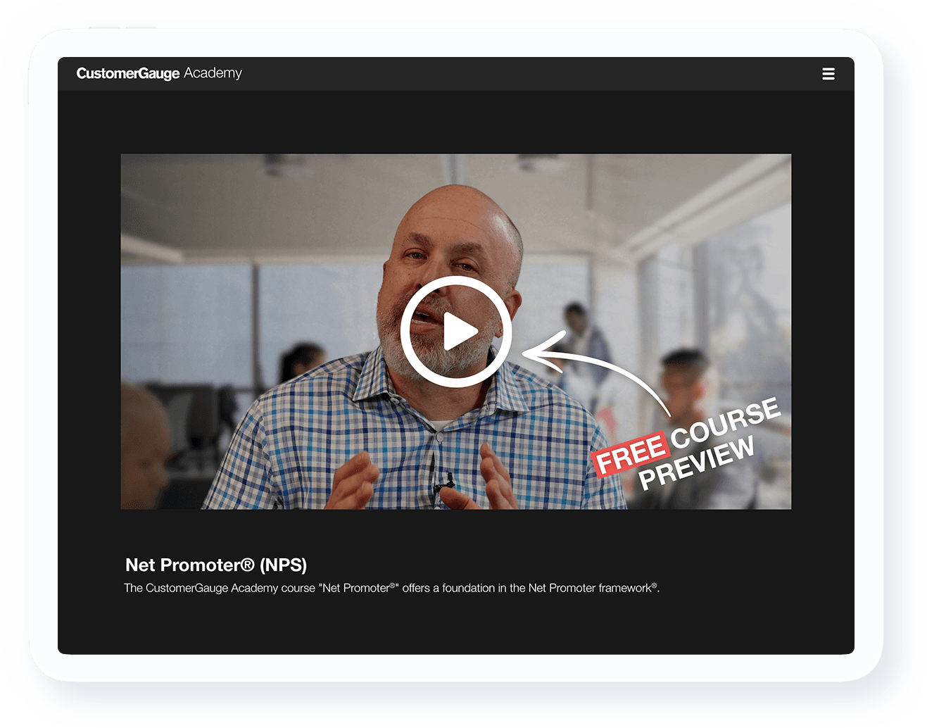 For a limited time only, check out a free preview of our gold-standard Net Promoter course. This NPS course offers a foundation in the Net Promoter framework. You will learn the origins of Net Promoter, why Net Promoter is the most trusted metric in B2B, how every department and level of your organization can benefit from Net Promoter, and how Net Promoter can lead to growth. Click below to access your free preview today!