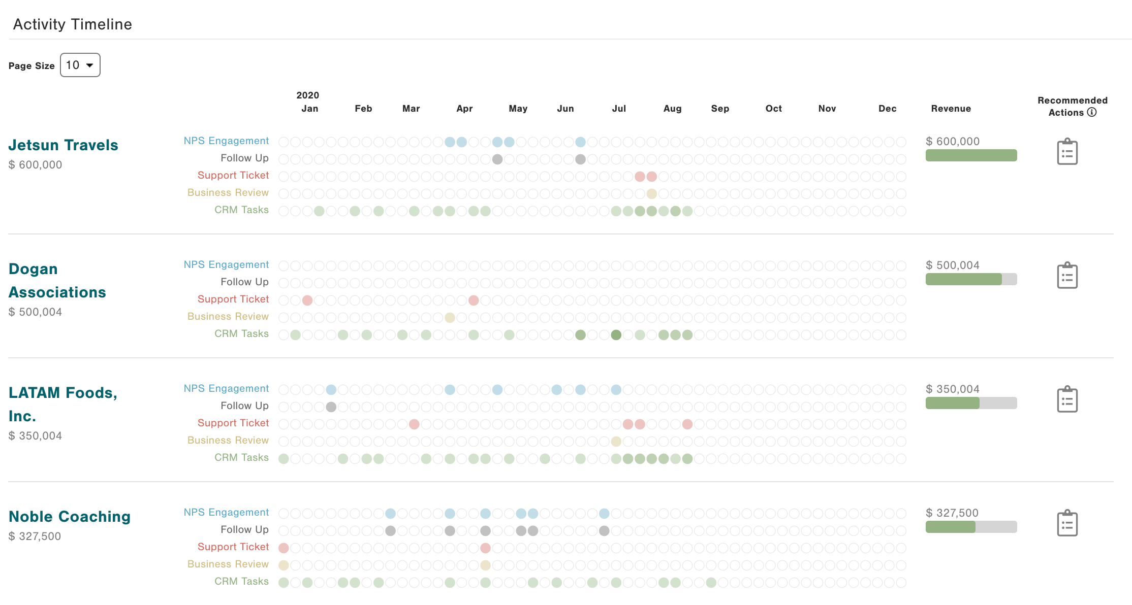 Track the level of your day-to-day customer engagements including meetings, calls, and any additional activities that an account manager conducts with their customers. This will help you understand if you have enough customer touches from your organization's side.