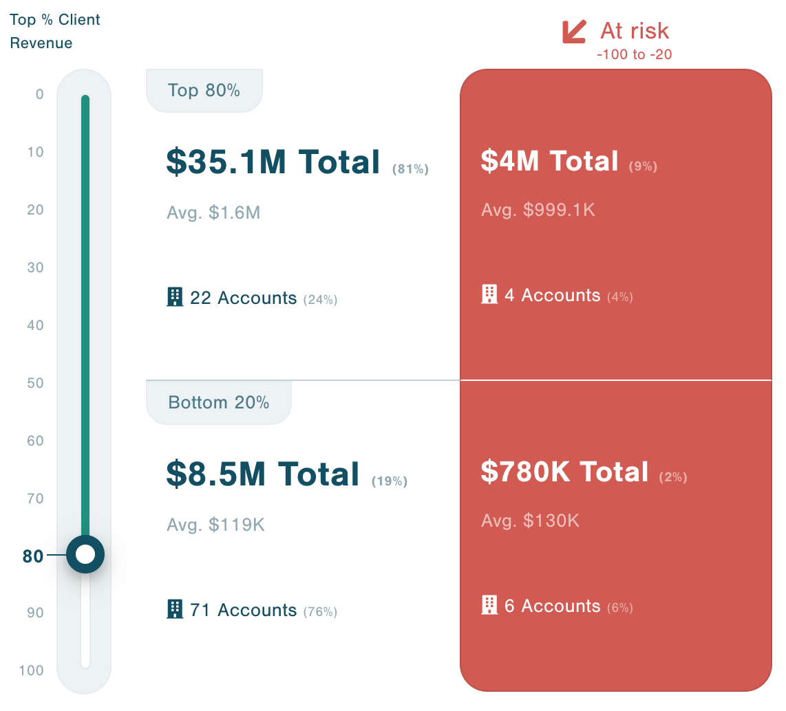 - Revenue Based Prioritisation Tool: Everyone needs a prioritisation guideline, and in CustomerGauge, Account Managers can leverage the Lifecycle Reporting to ensure they are focusing on closing the loop with the accounts that have the biggest impact to the bottom line FIRST. This powerful widget combines feedback and account revenue to give account managers the view of “At Risk” Detractor accounts that contribute to 80% of their revenue. From here, account managers can drill down to the underlying account and respondent information to start closing the loop at both an individual level and account level.