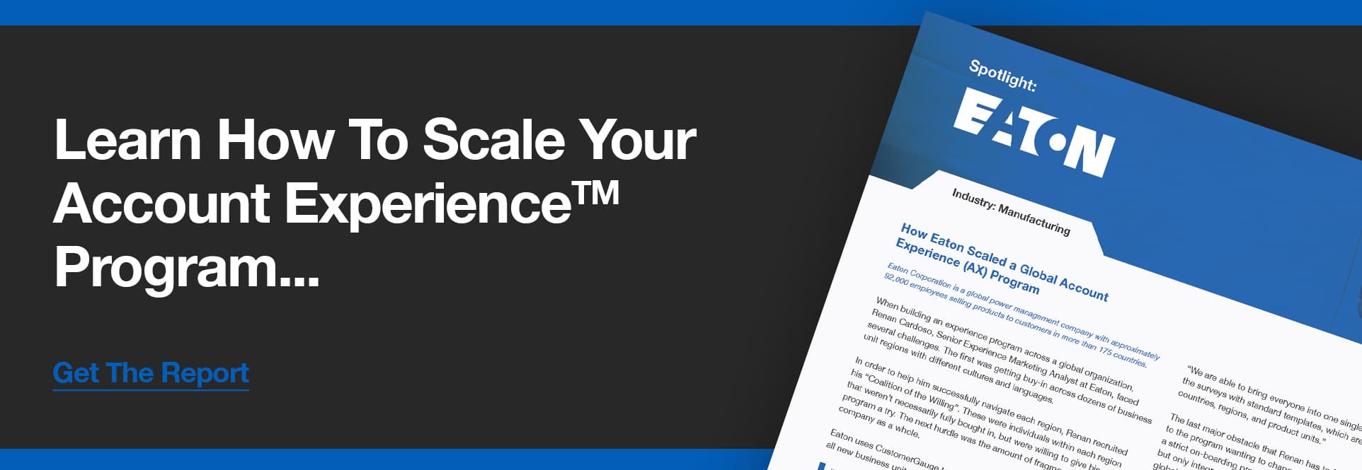 But that doesn’t mean that Eaton neglects the process of customer experience–far from it. In fact, by using CustomerGauge’s Account Experience Program, Eaton has been able to develop an approach that helps them successfully tackle the challenges of multi-layered customer support…and collect and act on feedback to create a stronger, better customer experience.
