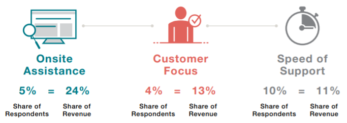 Understanding the financial impact of drivers, and the share of respondents that selected them, can help prioritize what to improve. For instance, if few, but the most valuable detractors, require onsite assistance, whereas the many, but less valuable detractors, require self-service features, then onsite assistance weighs heavier.