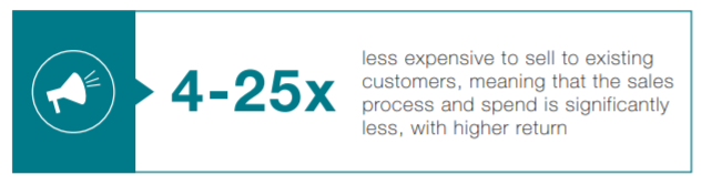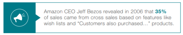 Amazon CEO Jeff Bezos revealed in 2006 that 35% of sales came from cross sales based on features like wish lists and “Customers also purchased…” products. As relationships with customers grow, so do their needs. Since it’s so much less expensive to sell to existing customers, businesses should grow areas for up-sell and cross-sell opportunities. Begin by looking at behaviors of similar customers who invested in services and build cases for other promoters who might have the same needs.